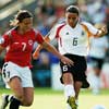 Alemanha vs Noruega (hoje 15.15), a final é clássica, mas gosto do futebol feminino jogado a este nível. É mais lento que o dos homens, há mais erros, mas é bonito, mais técnico e jogado mais à flor da pele. As estrelas são Solveig Gulbrandsen da Noruega e Birgit Prinz da Alemanha. Prinz impressionou pela velocidade e pela capacidade de passe. Gulbrandsen é mais oportunista, mas teve um momento complicado na meia-final ao levantar a camisola para comemorar um golo, o soutien estava lá mas a árbitro não perdoou o cartão amarelo. Os homens só levam amarelo se tirarem a camisola...injustiças, injustiças!